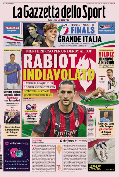 لا غازيتا ديللو سبورت تألق أدريان رابيو وعودة كنان يلدز.