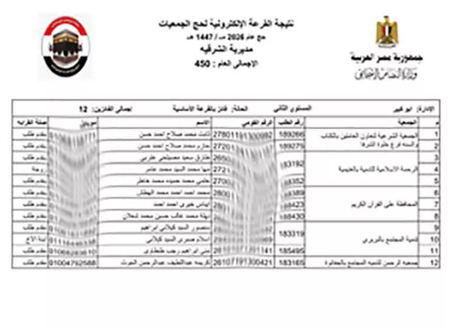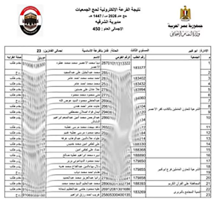 بالصور أسماء نتائج قرعة حج الجمعيات الأهلية بالشرقية