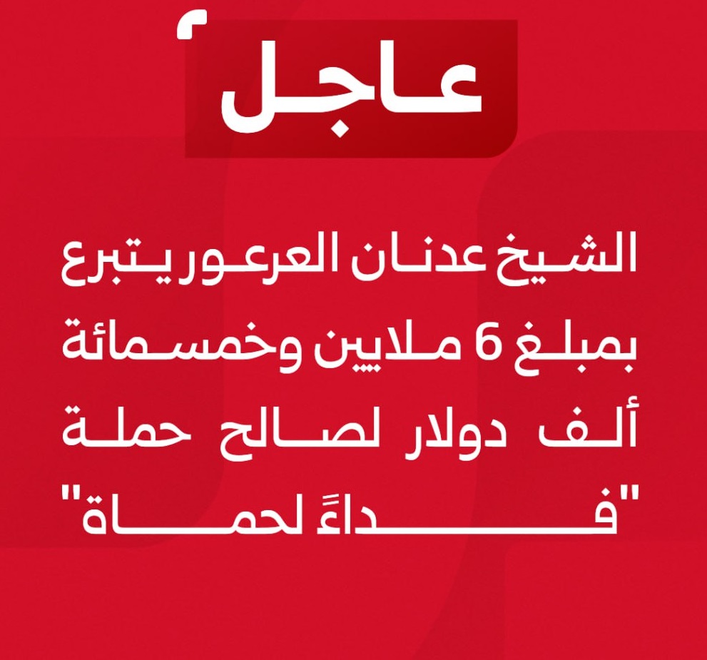 أثار رجل الدين السوري عدنان العرعور جدلاً واسعاً على مواقع التواصل الاجتماعي بعد انتشار أنباء عن تبرعه بمبلغ 6.5 مليون دولار لدعم حملة "فداء لحماة" وقد تباينت ردود الأفعال بين متفاجئ ومشكك، وسط تساؤلات حول مصادر الأموال وطريقة جمعها، بينما تداول البعض مزاعم غير مؤكدة عن خلفية التبرع.