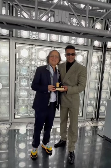 تسلم الفنان محمد رمضان جائزة خاصة بالفن والثقافة من فرنسا، في لقاء احتفالي جمع بينه وبين وزير الثقافة الفرنسي السابق چاك لونج وزوجته والصديق فيليب.