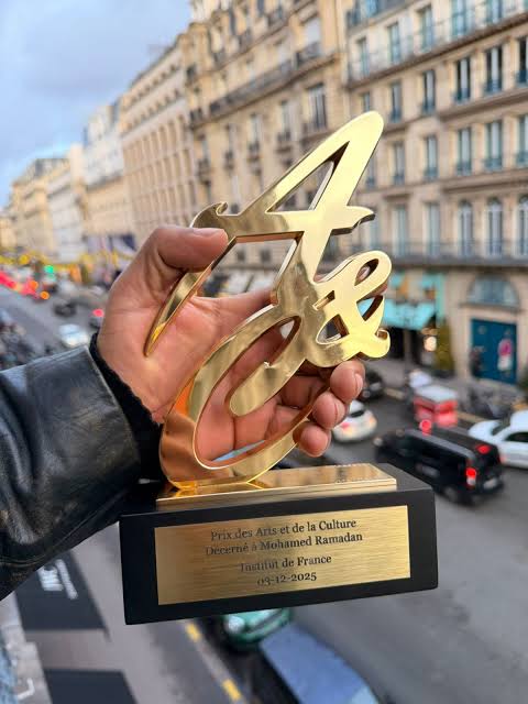 محمد رمضان يتسلم جائزة فرنسية للفن والثقافة من وزير سابق.. ويعلن: ”العشوائيات انتهت في مصر”