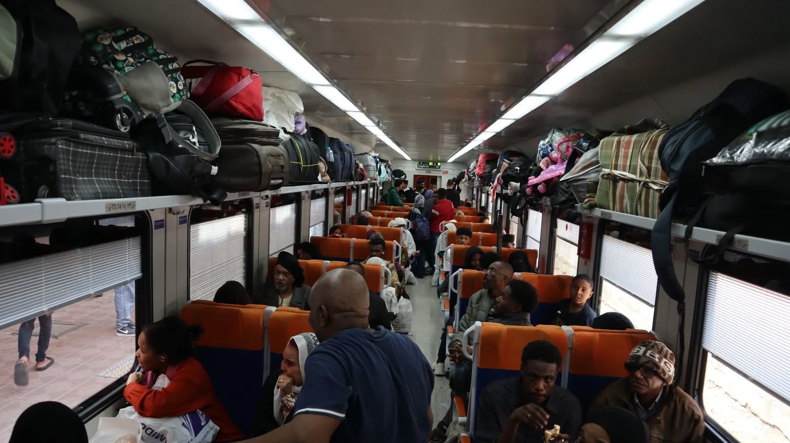 تحرك القطار رقم (1940) في ساعات الصباح الأولى من محطة القاهرة، وعلى متنه مئات الأسر السودانية، في رحلة مخصصة ومجهزة لتوفير أقصى درجات الراحة والأمان، ومن المقرر أن يصل القطار إلى محطة السد العالي بأسوان في تمام الساعة 11:40 مساءً، ضمن خطة منظمة لنقل العائدين إلى وطنهم عبر المنافذ الجنوبية.